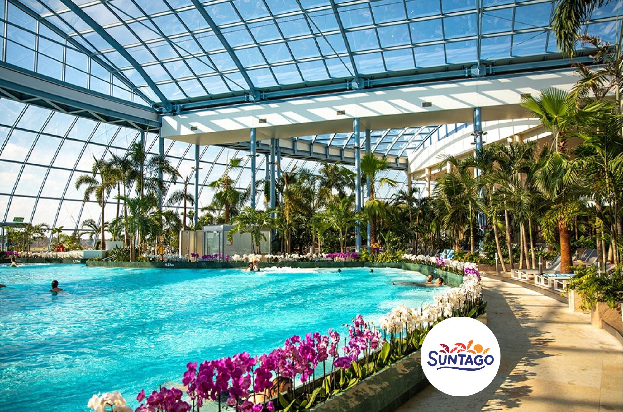 Suntago to największy zadaszony park wodny w Europie. Obiekt umożliwia spędzenie urlopu w Polsce w tropikalnym klimacie 32 stopni Celsjusza, w otoczeniu ponad 740 prawdziwych palm przywiezionych z różnych zakątków świata, jest tym samym świetną alternatywną wyjazdu na wakacje za granicę. W Suntago do dyspozcji Gości są cztery strefy tematyczne – Jamango, Relax, Saunaria, Wellnes & SPA (strefa SPA jest dodatkowo płatna). Trzy ostatnie są dostępne wyłącznie dla gości powyżej 16 roku życia.