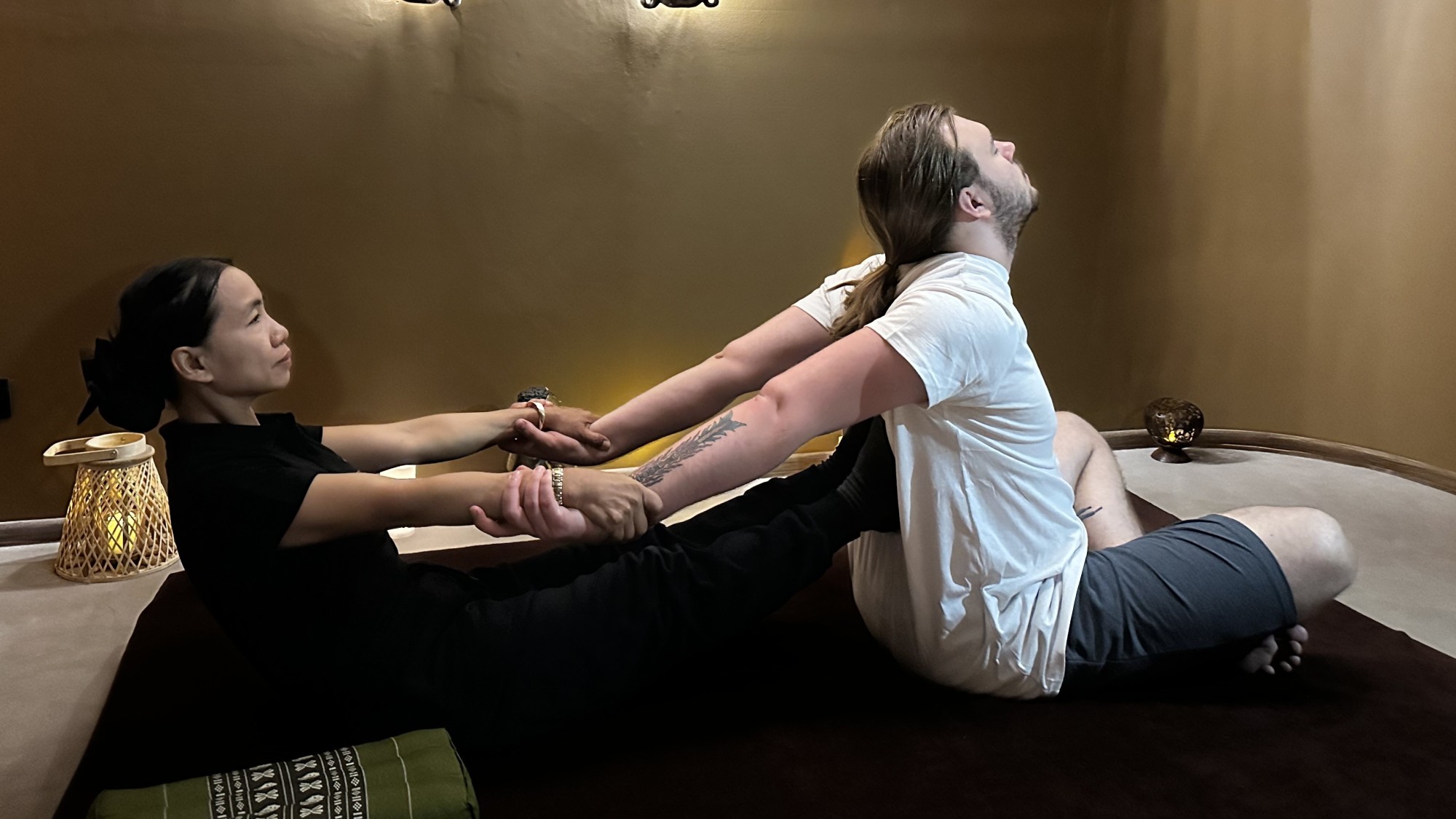 Obie osoby masowane są jednocześnie, przez dwie masażystki. Masaż Tajski jest masażem całego ciała, który łączy w sobie elementy akupresury, jogi oraz rozciągania. Intensywność masażu jest dopasowywana do potrzeb osoby masowanej.